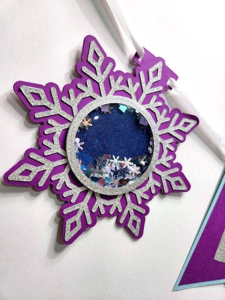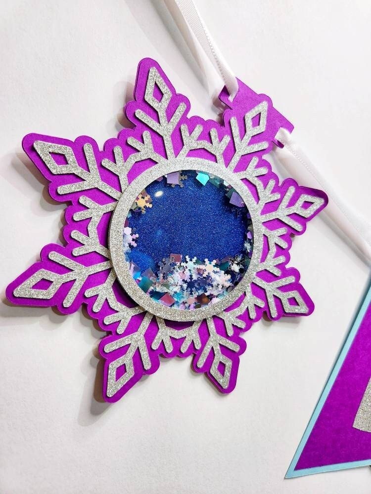 This Winter ONEderland Birthday Banner is a truly unique decoration for your Snow Queen or Ice Princess or Prince's Birthday Decor! This is a eye-catching, exceptionally unique snow-themed birthday banner that comes ready-to-hang on white ribbon. The letters on this banner are a silver glitter and the end-piece snowflakes are shakers filled with shiny glitter and snow-shaped sequins! The photos with this imaginative banner in your background will be stunning!!